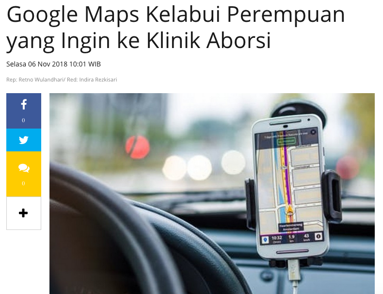 Republika-Google Maps Kelabui Perempuan yang Ingin ke Klinik Aborsi