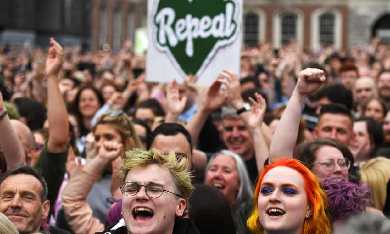 يحتفل الناس بنتيجة استفتاء الإجهاض الأيرلندي في مايو 2018