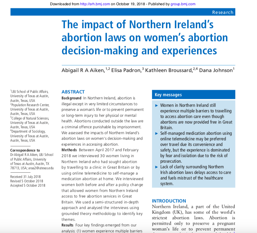 New study of Women on Web data shows harm caused by restrictive abortion laws in Northern Ireland.