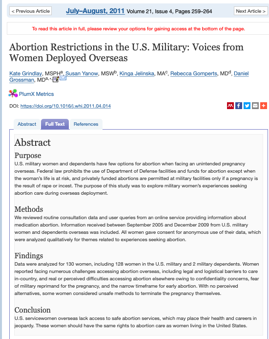 Abortion Restrictions in the U.S. Military: Voices from Women Deployed Overseas